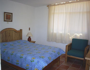 para 2 personas con 1 cama matrimonial y baño completo con televisión y sistema SKY y agua caliente. Costo habitación sencilla para 2 personas Por Noche.